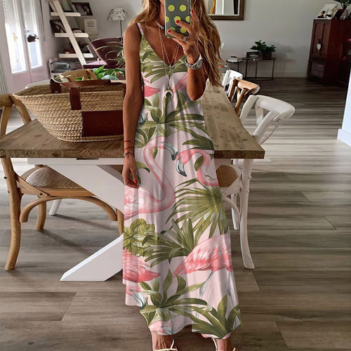 Flamingo Tropical Sleeveless Maxi Dress | Women Summer Dress | Sundress